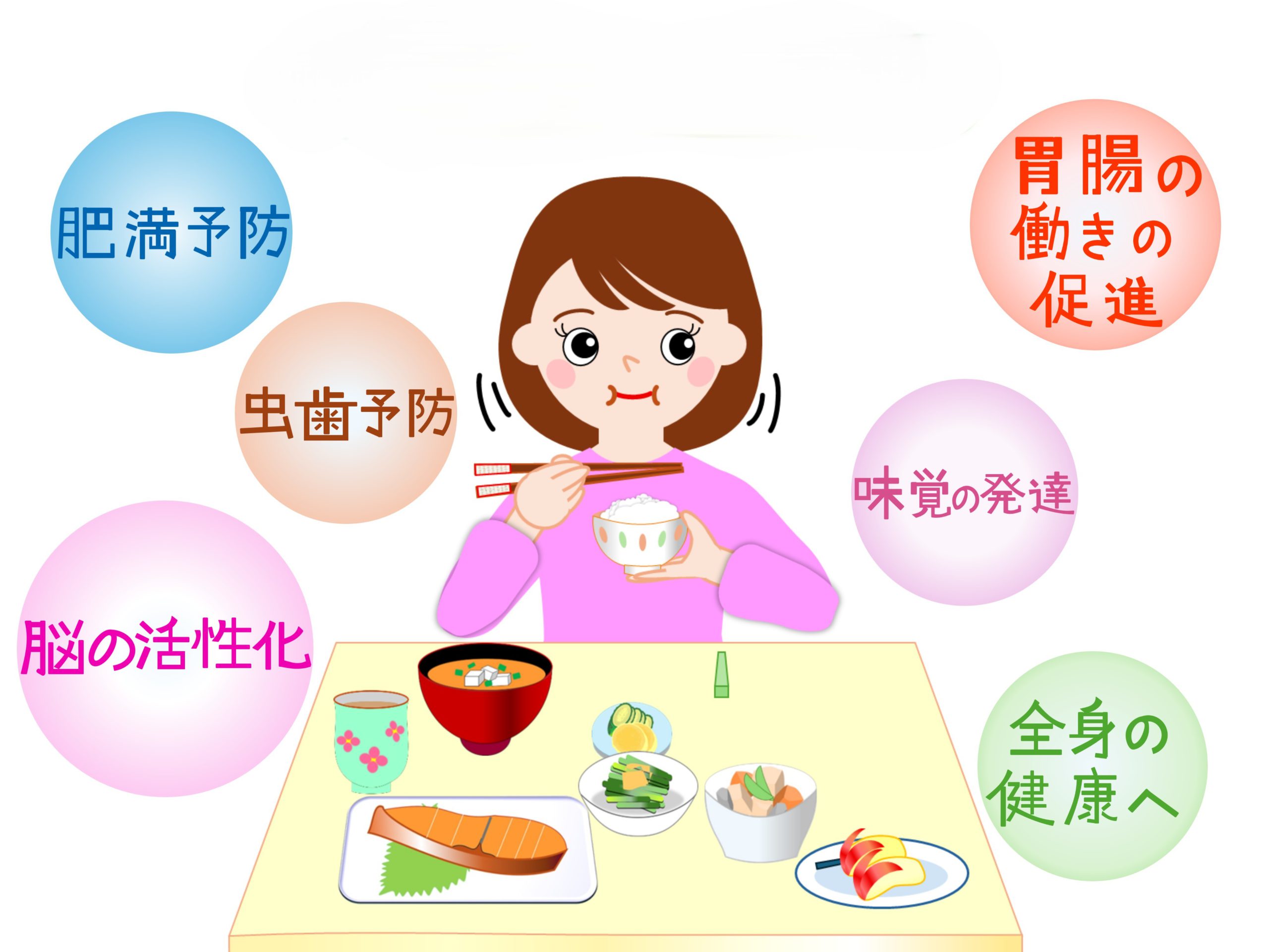 ・肥満防止・・・よく噛んで食べることで満腹中枢を刺激する